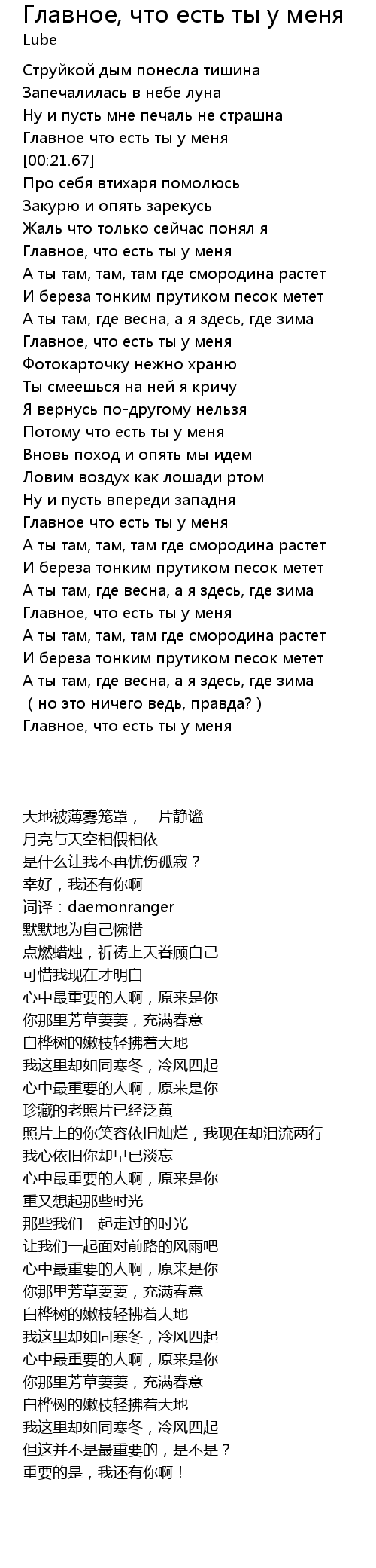 | [02:45.59] | Главное, что есть ты у меня |