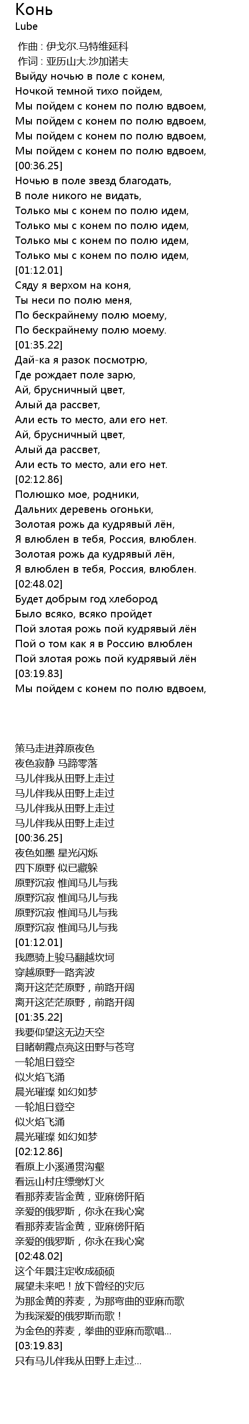 | [03:00.35] | Пой злотая рожь пой кудрявый лён |