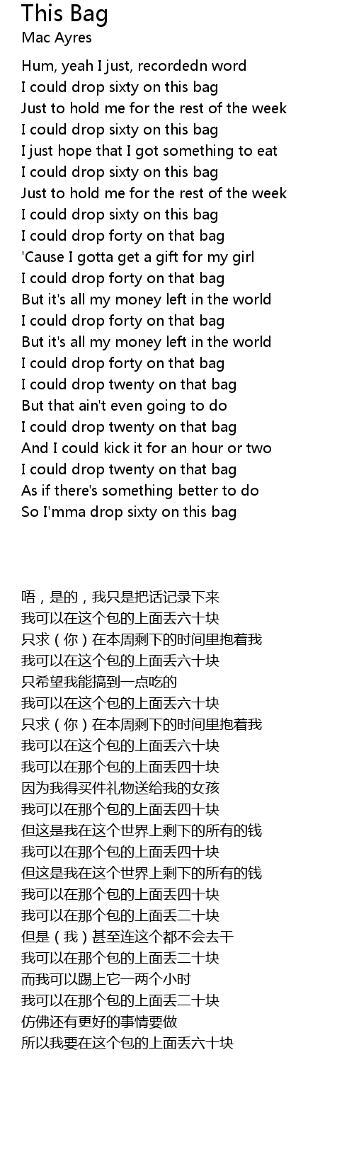 So I'mma drop sixty on this bag |