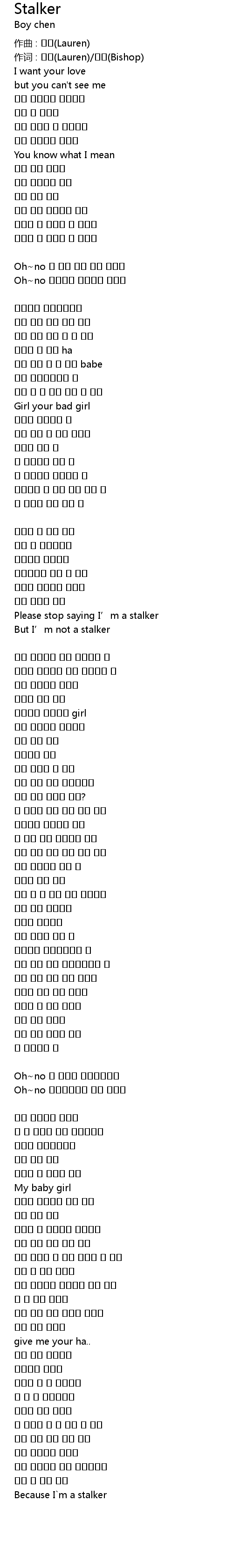 | 作词 : 로렌(Lauren)/비숍(Bishop) | |