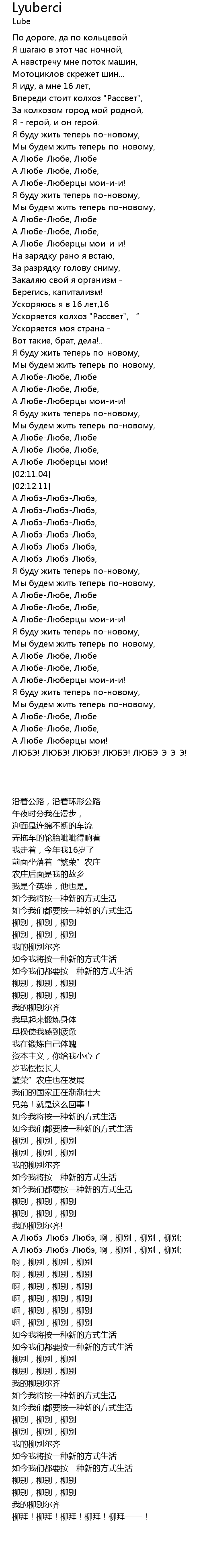 | [02:11.04] | А Любэ-Любэ-Любэ, 啊,柳别,柳别,柳别; |