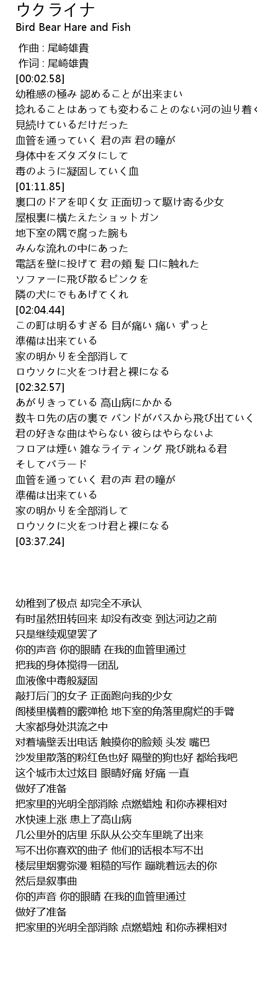| [00:00.686] | 作词 : 尾崎雄貴 |