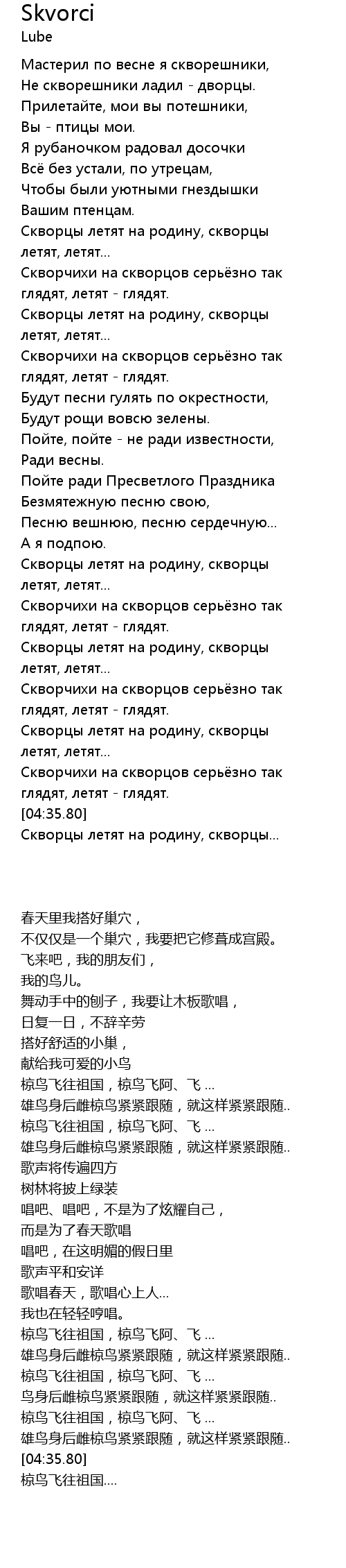 | [04:47.67] | Скворцы летят на родину, скворцы... |
