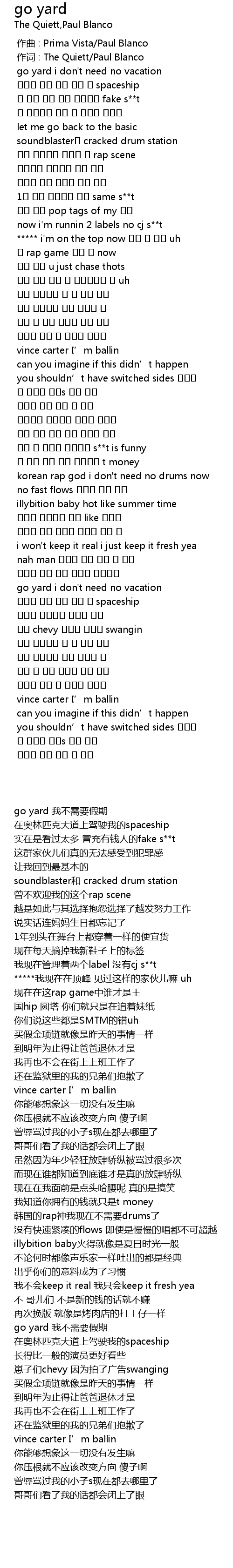| [00:00.107] | zuo ci : The Quiett Paul Blanco |