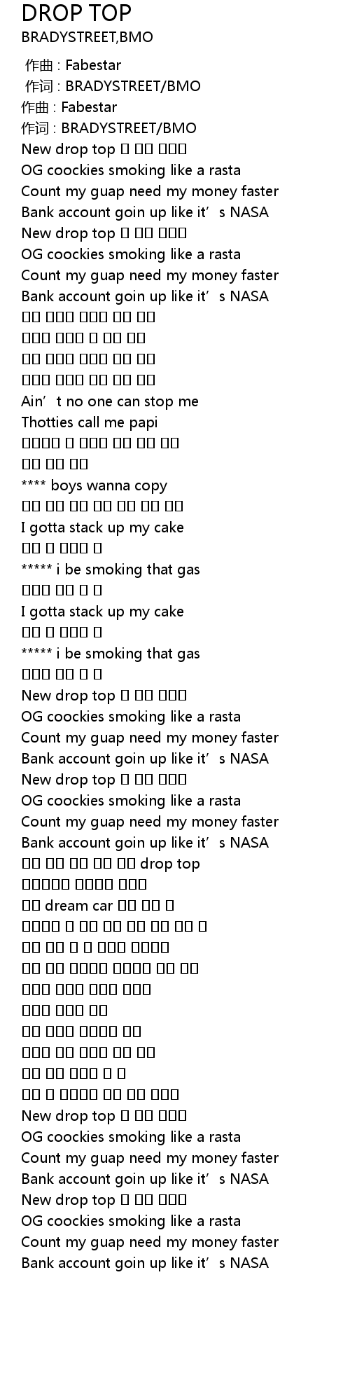 | 歌曲 | DROP TOP |