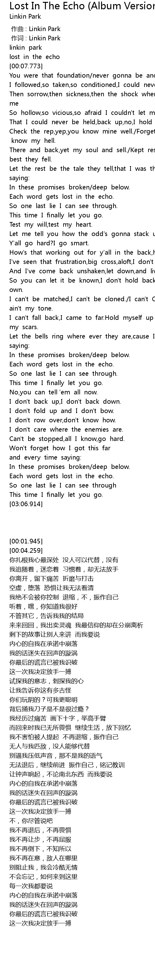 | [00:00.00] | 作曲 : Linkin Park |