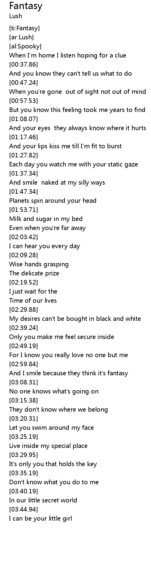 | [01:19.10] | And your lips kiss me till I'm fit to burst |