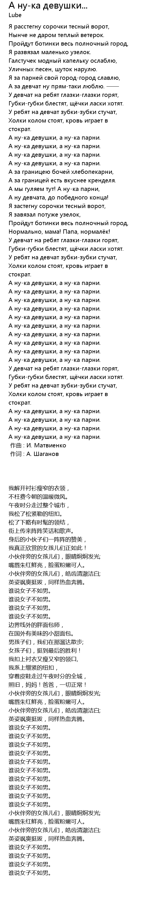 | 歌曲 | А ну-ка девушки... |