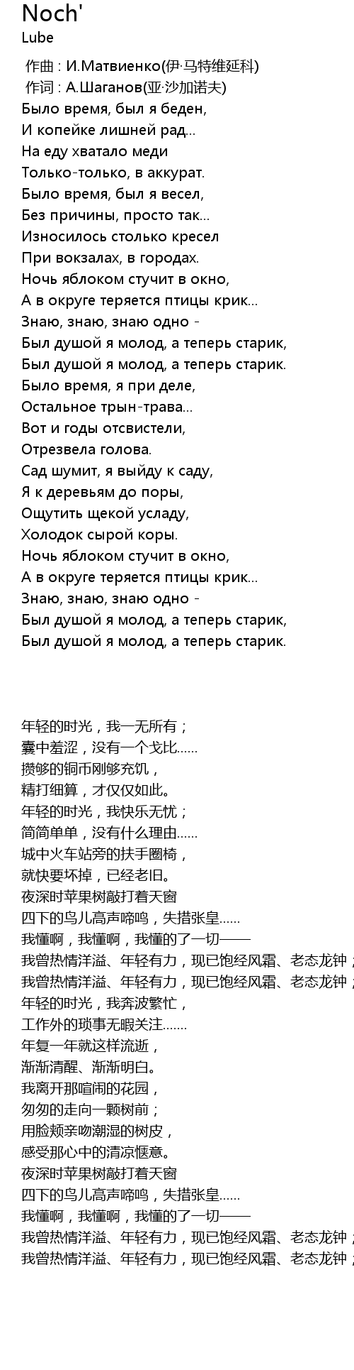 | [00:01.00] | 作词 : А.Шаганов(亚·沙加诺夫) |