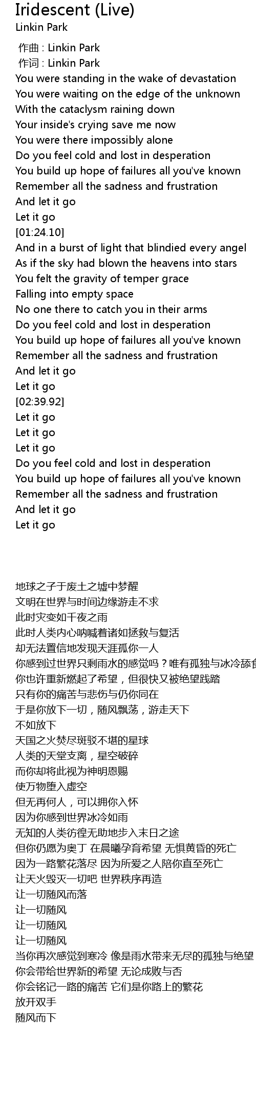 | [00:01.00] | 作词 : Linkin Park |