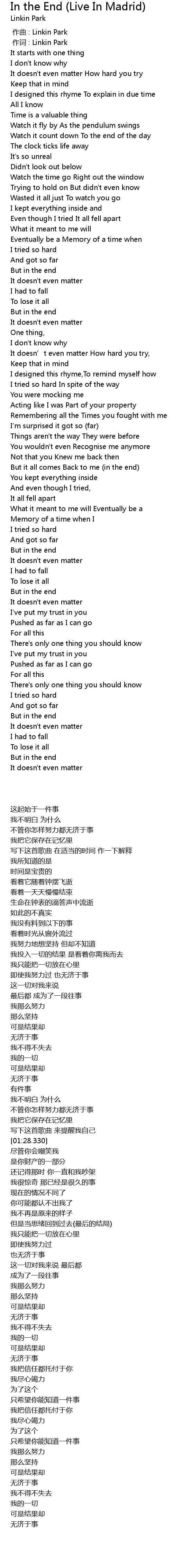 | [00:00.00] | zuò qǔ : Linkin Park |