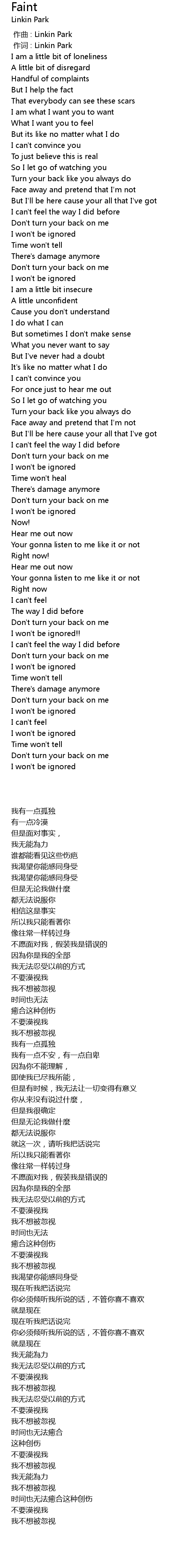 | [00:00.00] | 作曲 : Linkin Park |