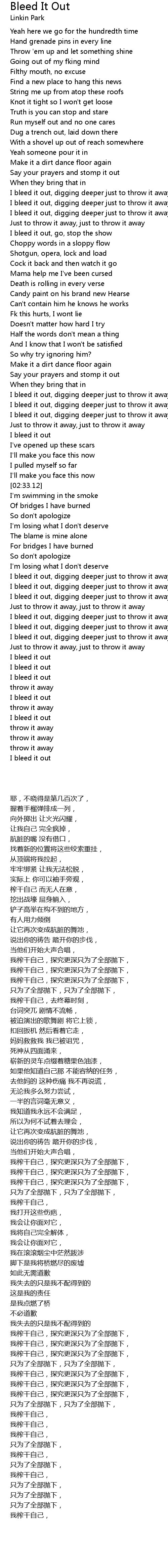 I bleed it out, digging deeper just to throw it away |