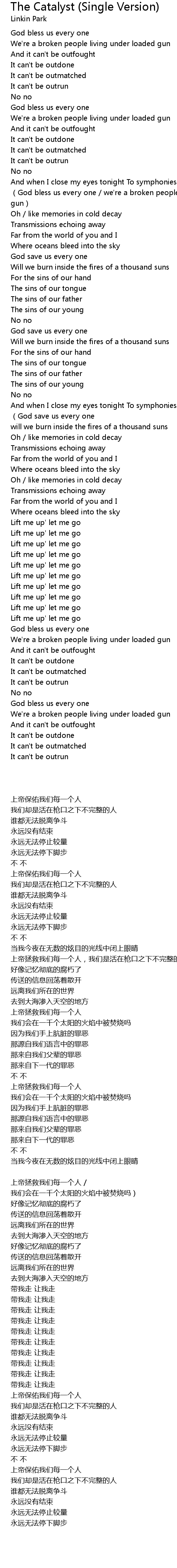 | [01:08.570] | God bless us every one we' re a broken people living under loaded gun |