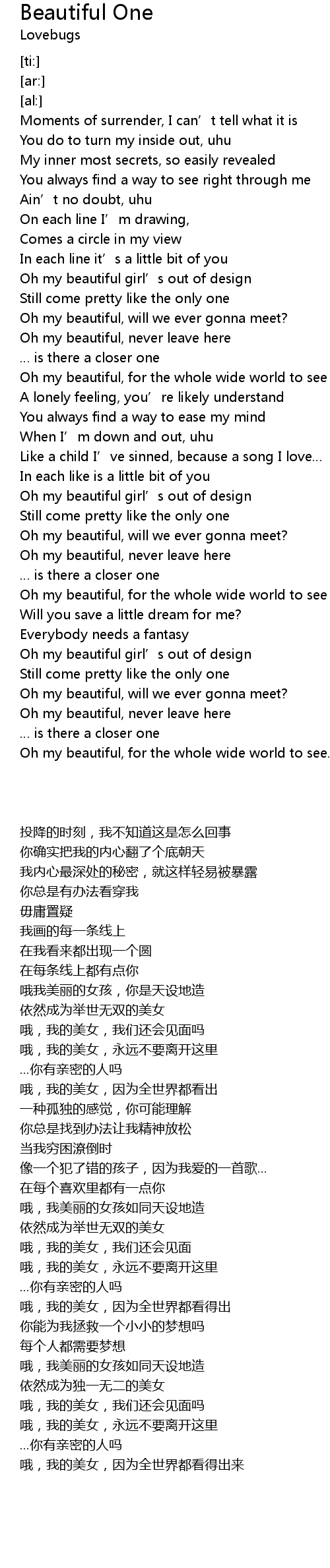 | [02:00.31] | Oh my beautiful girl' s out of design |