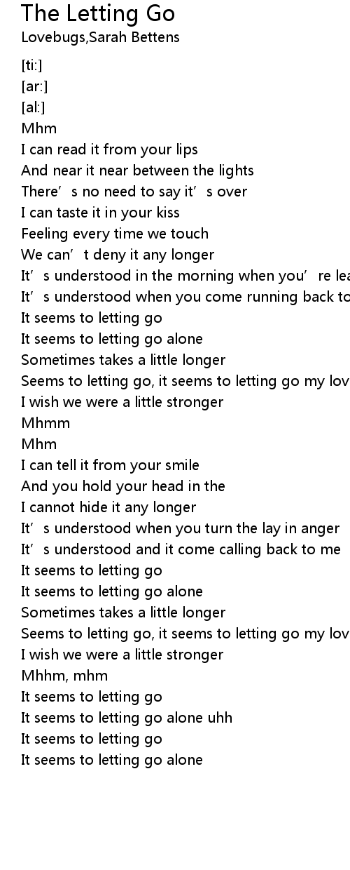 | [00:59.57] | Seems to letting go, it seems to letting go my love |
