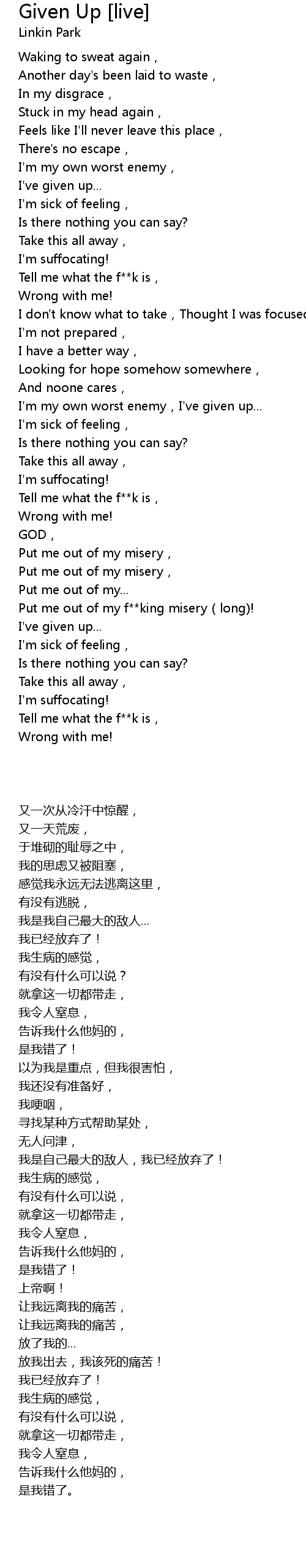| [02:21.34] | Put me out of my f king misery long! |