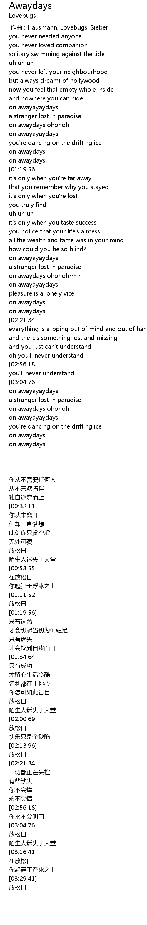 | [02:00.69] | on awaydays ohohoh~~~ |