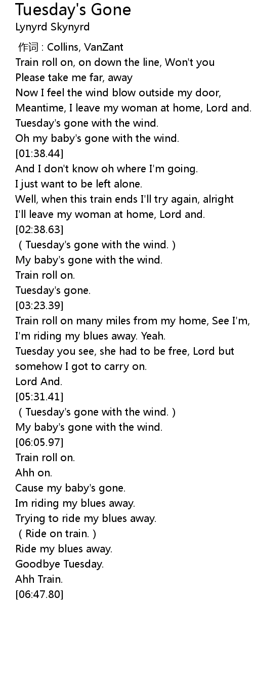 | [02:40.04] | (Tuesday's gone with the wind.) |