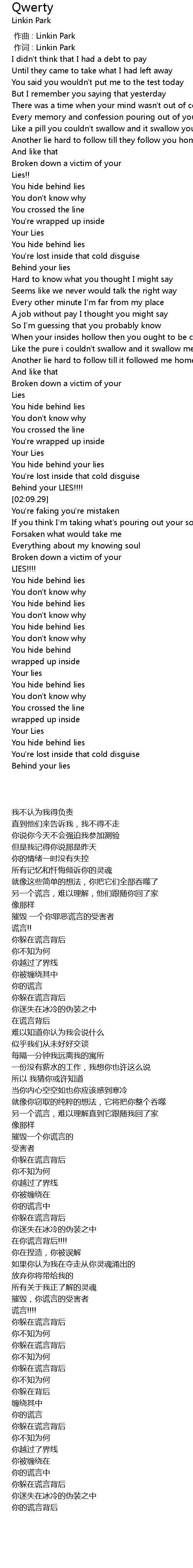 | [00:01.00] | 作词 : Linkin Park |