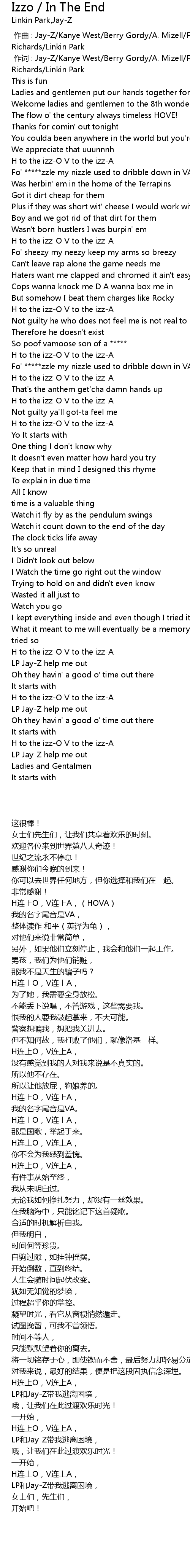 | 歌曲 | Izzo / In The End |