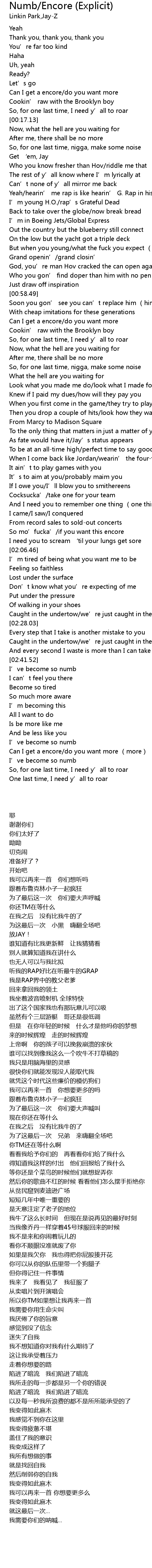 | 歌曲 | Numb/Encore (Explicit) |