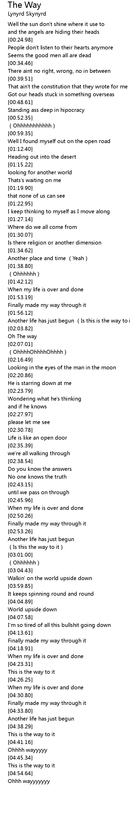 | [02:05.44] | Oh The way |