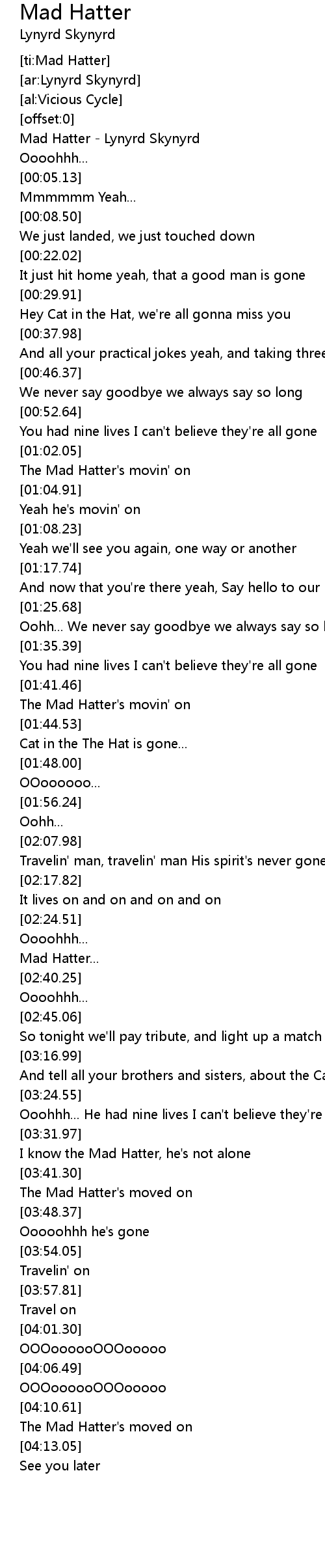 Mad Hatter - Lynyrd Skynyrd |