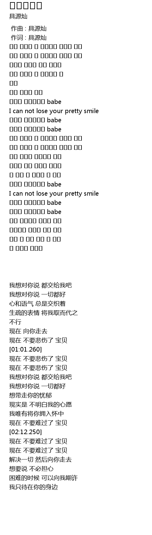 | [01:17.130] | 이제는 슬퍼하지마 babe |