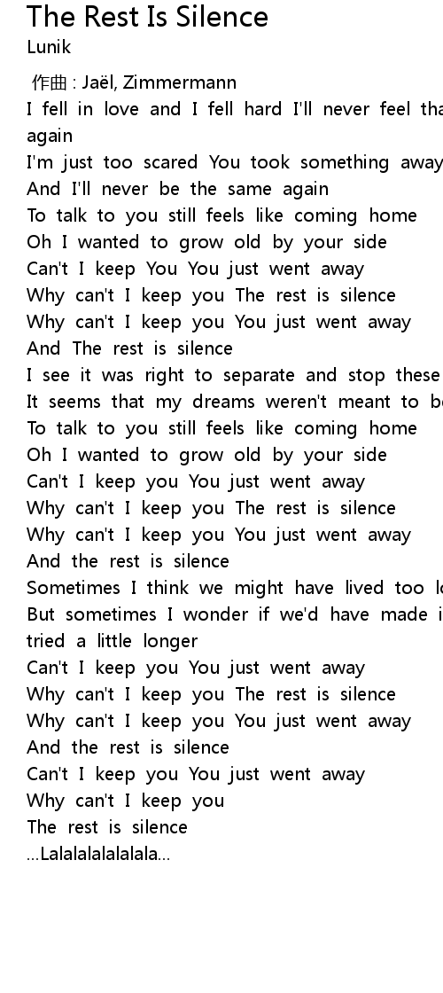 | [00:52.238] | Why can't I keep you The rest is silence |
