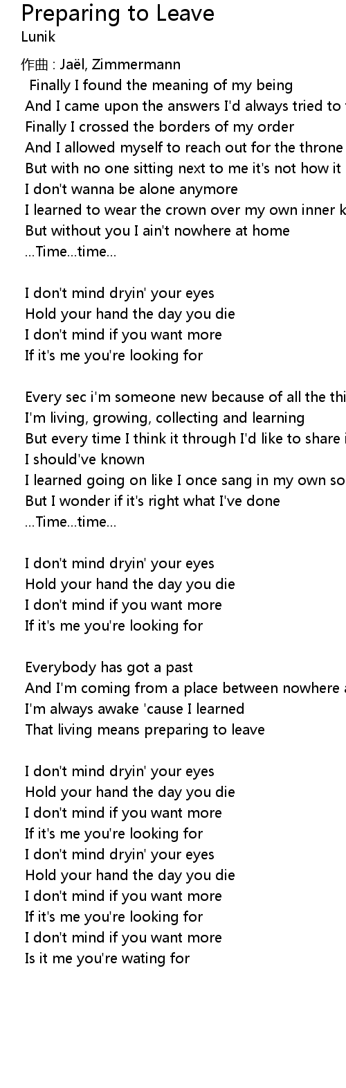 | 歌曲 | Preparing to Leave |
