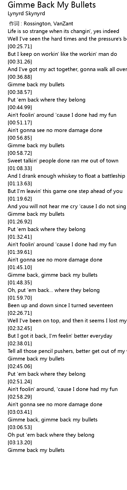 | [03:03.97] | Gimme back, gimme back my bullets |