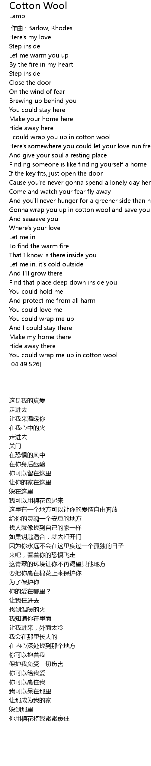 | [00:00.00] | zuò qǔ : Barlow, Rhodes |