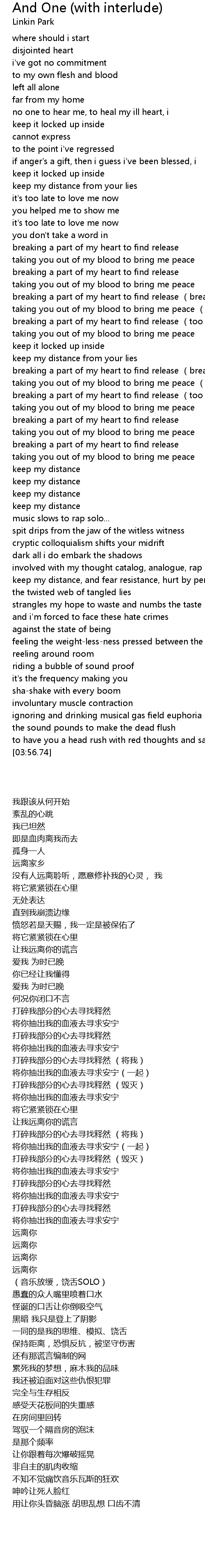 | [02:30.68] | 将你抽出我的血液去寻求安宁(一起) |