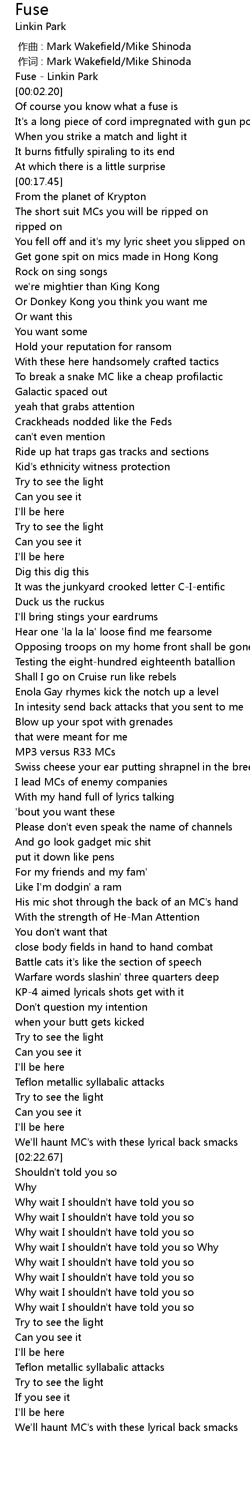 | [00:00.13] | 作词 : Mark Wakefield/Mike Shinoda |