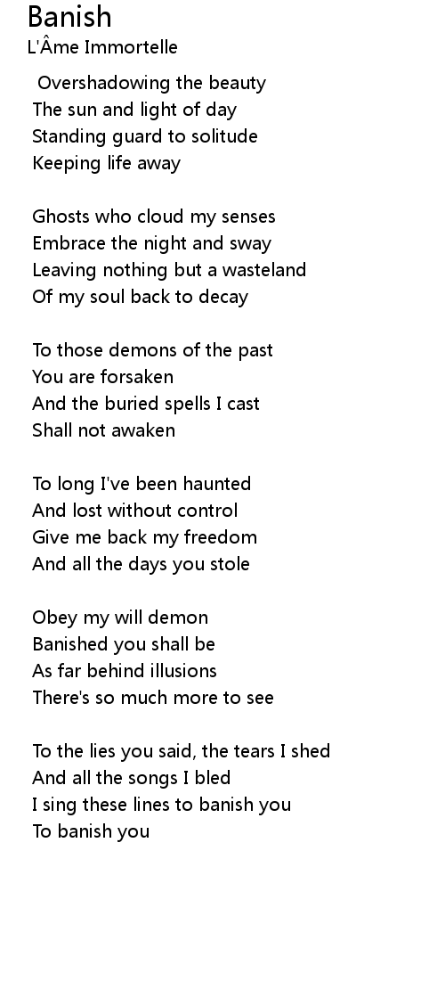 I sing these lines to banish you |