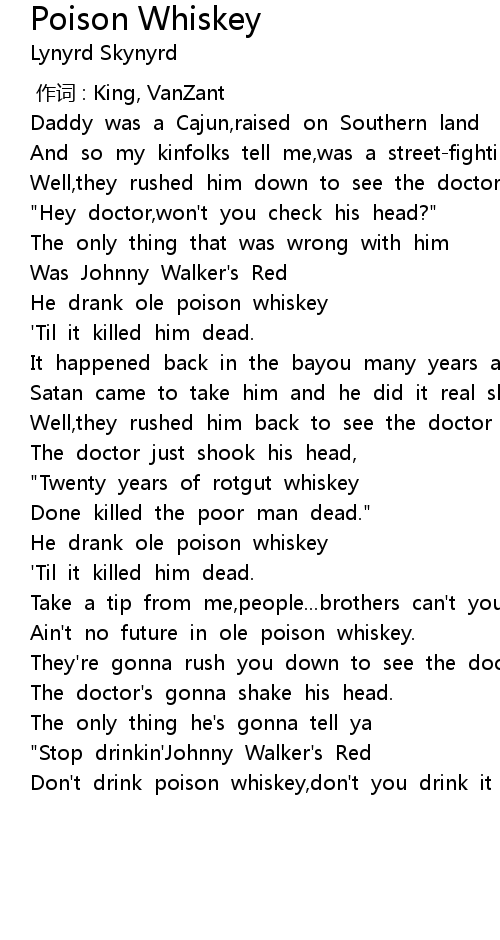 | [00:49.39] | He drank ole poison whiskey |