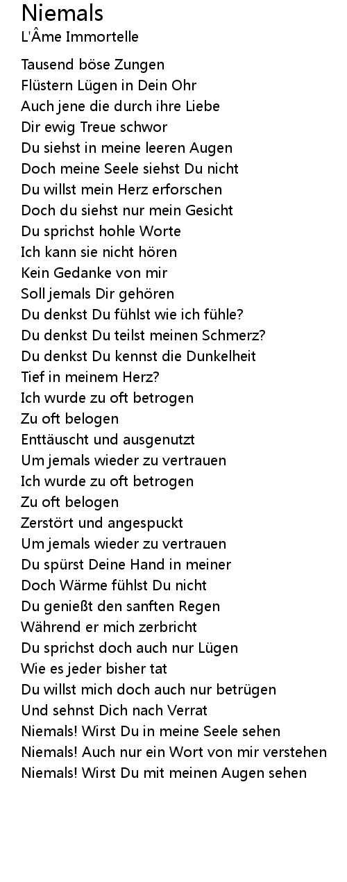 | Niemals! Wirst Du mit meinen Augen sehen |