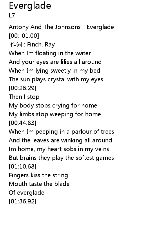 | [00:-04.00] | Antony And The Johnsons Everglade |