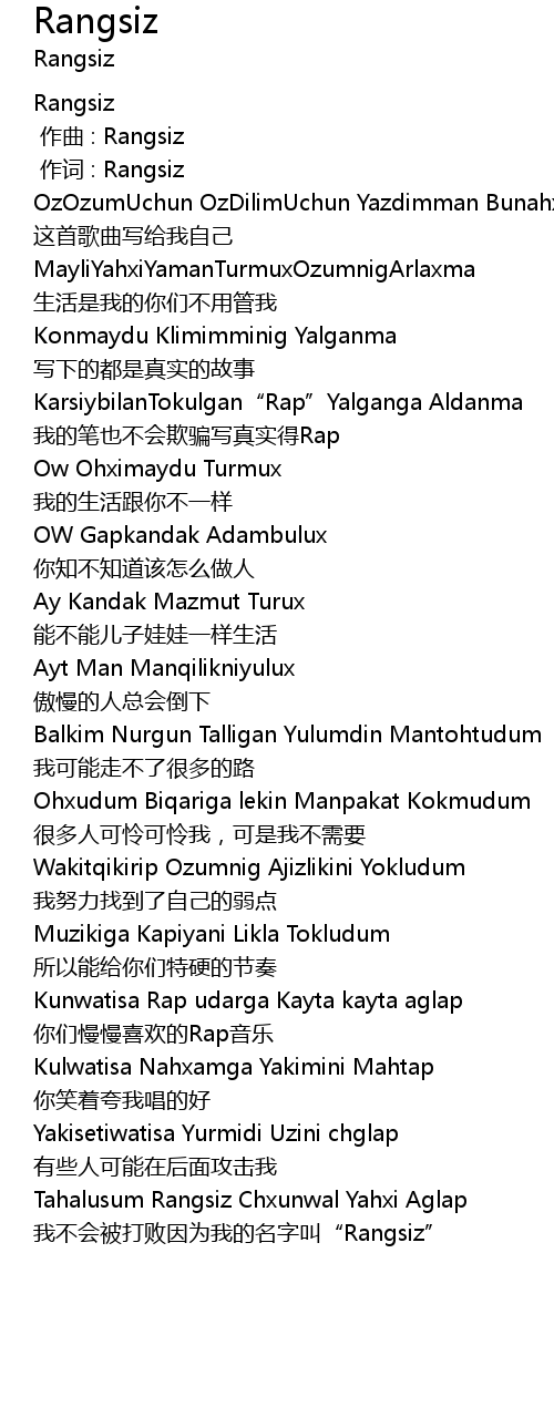 | [01:01.490] | 我不会被打败因为我的名字叫“Rangsiz” |