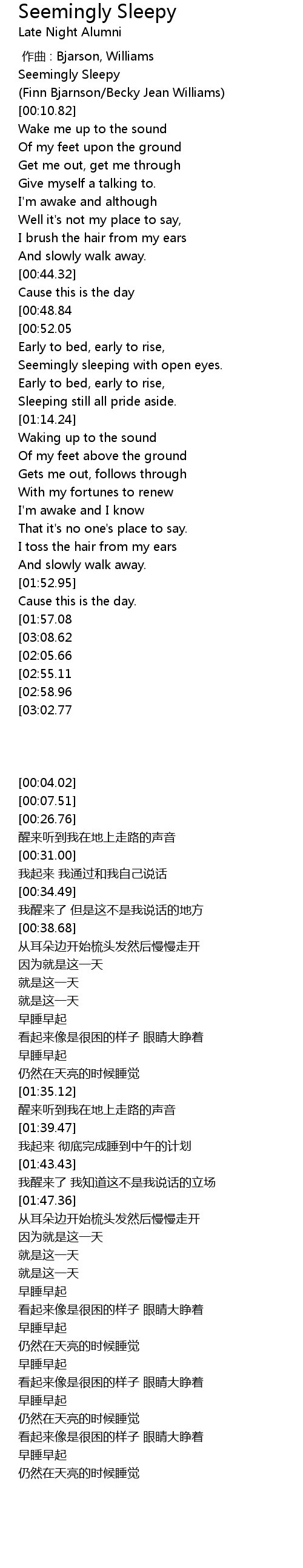 | [03:02.77] | 仍然在天亮的时候睡觉 |