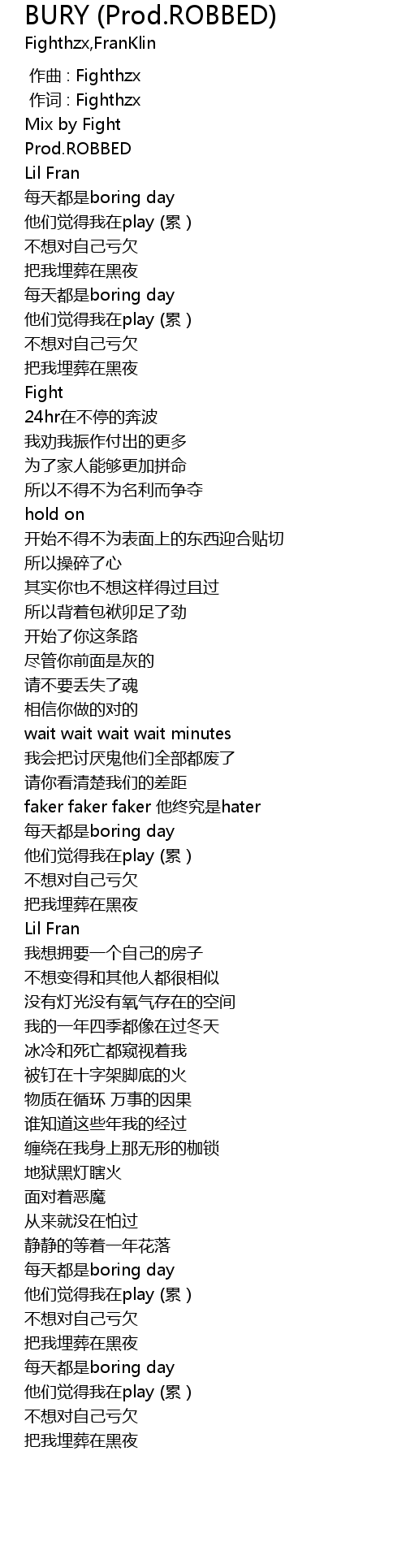 | [00:01.000] | 作词 : Fighthzx |