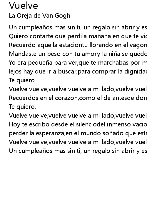 | Vuelve vuelve,vuelve vuelve a mi lado,vuelve vuelve vuelve a por mi... | |