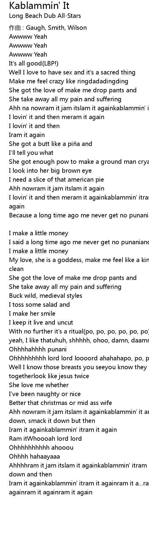 | Ahh na nowram it jam itslam it againkablammin' itram it again | |