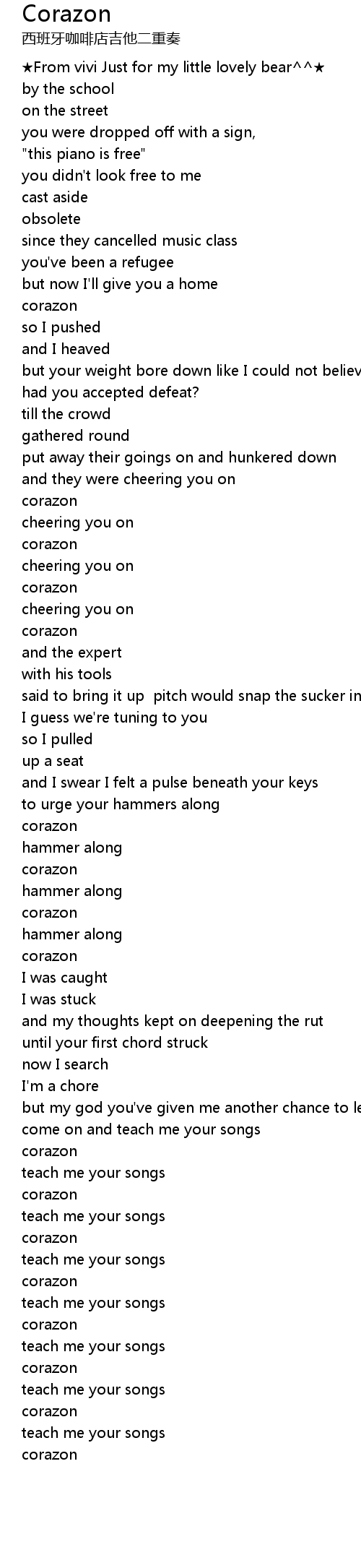 | [04:15.32] | teach me your songs |