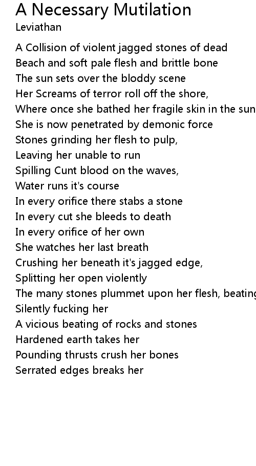Stones grinding her flesh to pulp, |