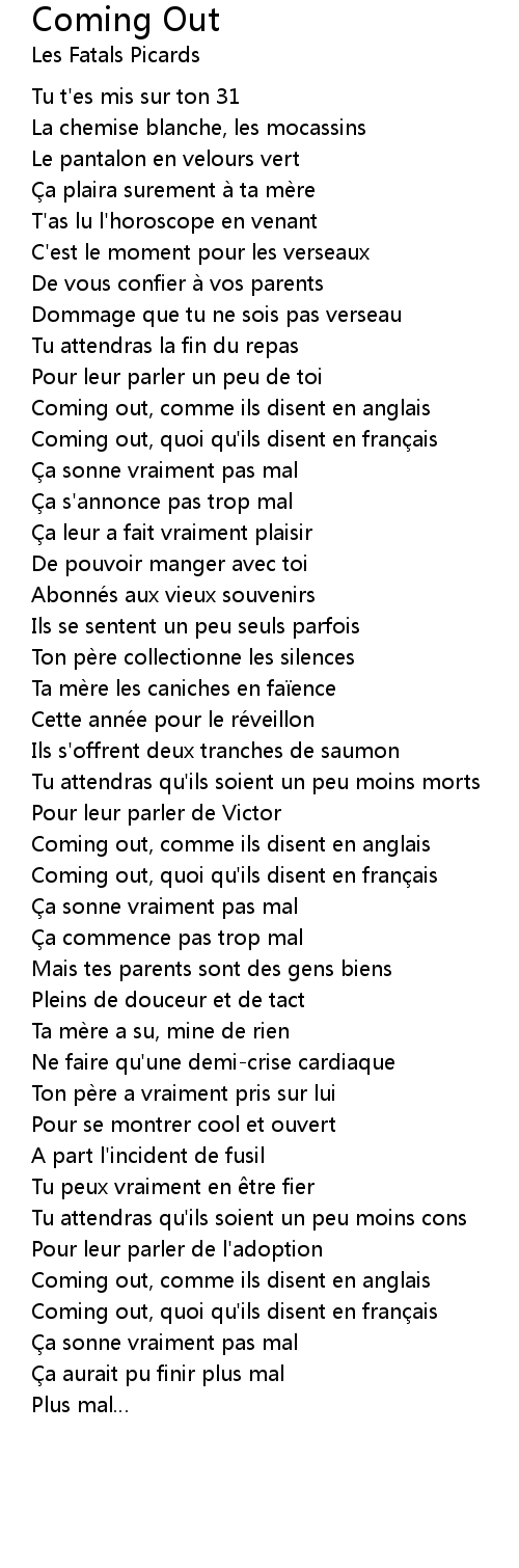 | Coming out, quoi qu'ils disent en français | |