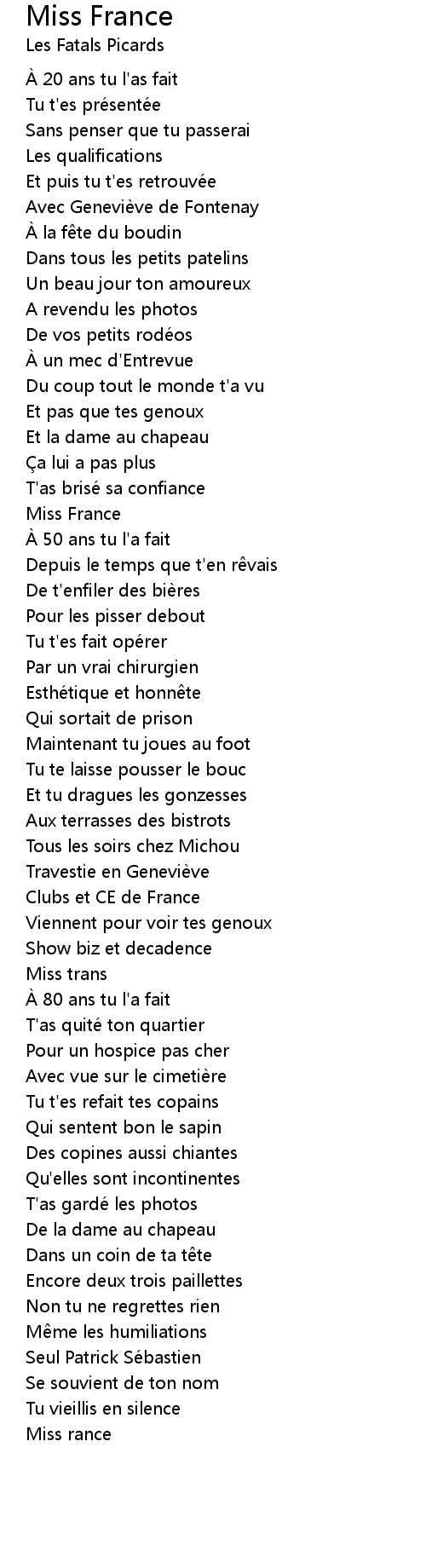 | 歌曲 | Miss France |