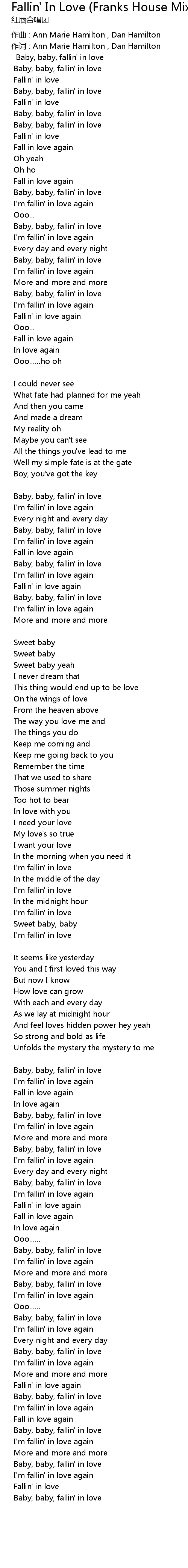 | 歌曲 | Fallin' In Love (Franks House Mix) |