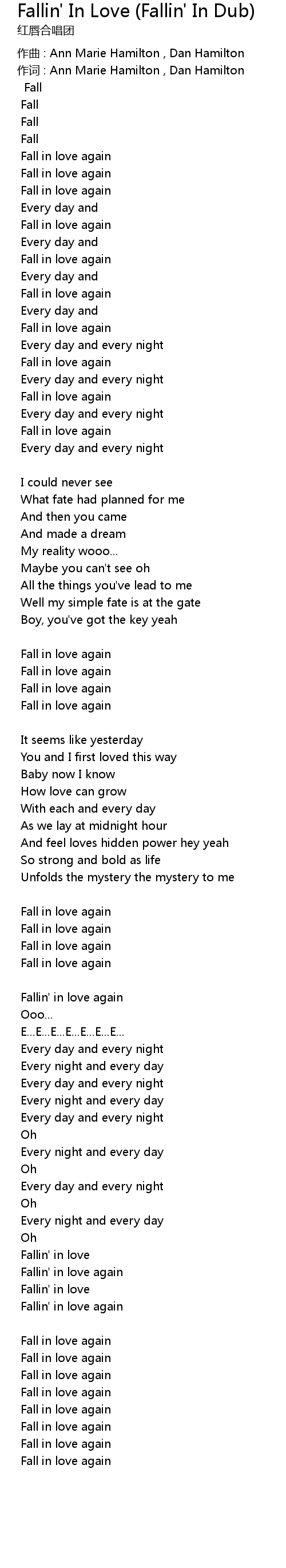 | 歌曲 | Fallin' In Love (Fallin' In Dub) |